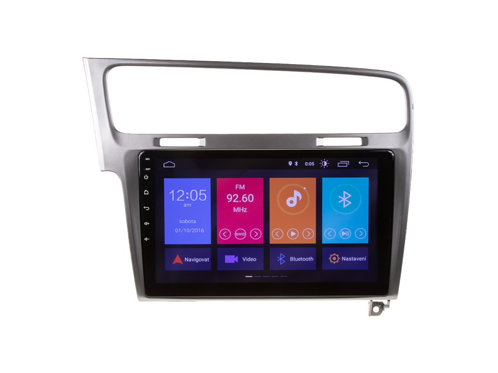 Multimediální autorádio v OEM tvaru pro VW Golf 7 s operačním softwarem Android 11.0, Wi-Fi, GPS, Bluetooth, Mirror link a CarPlay.