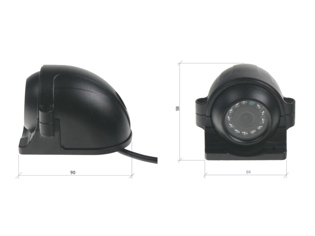 AHD kamera CCD s IR světlem a HD rozlišením (720P), vnější/vnitřní , určená pro montáž především na nákladní vozy, autobusy, karavany či dodávky. Propojení 4-PINovým kabelem. Kameru lze připojit pouze k zařízením s technologií AHD (analog HD technology), nelze připojit k běžným monitorům, které nemají AHD! Lze použít např k záznamovému zařízení DVRB4C.