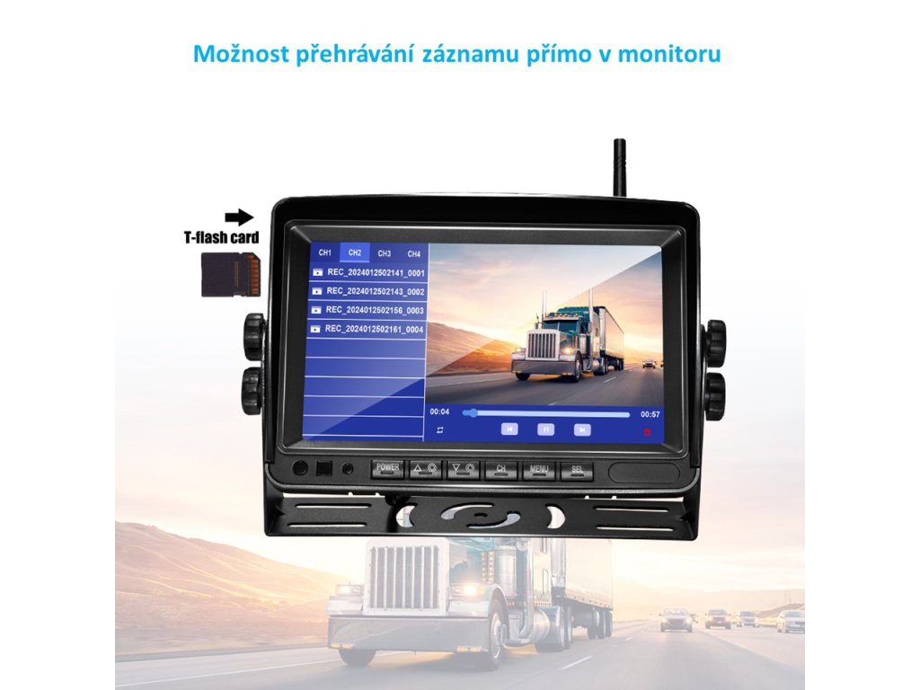 SET bezdrátový digitální kamerový systém s monitorem 7" AHD, 4CH, DVR, BSD