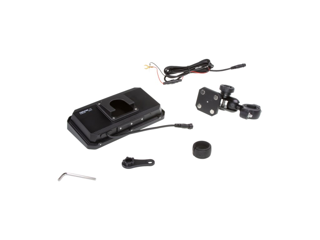 Monitor s dotykovou 6" obrazovkou na motocykl (Plug and Play, vhodné pro všechny motocykly) je dodáván se silným kloubovým držákem s možností instalace na řídítka.