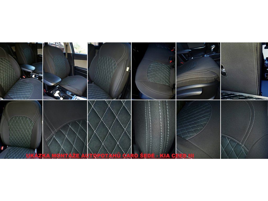 Zakázková výroba. Na ilustrační fotografii je vyfocena sedačka z auta Škoda Octavia II. Vzhledem k tomu, že auta mají různá sedadla a autopotahy jsou šité přesně dle tvaru sedaček v konkrétním autě, potahy pro Váš vůz se můžou od ilustrační fotky tvarově lišit. Při výrobě a zpracování střihů pro konkrétní auto je vždy přihlíženo k původním švům a tvarům sedadel, a k tomu, aby výsledný efekt byl co nejlepší z estetického a funkčního hlediska.