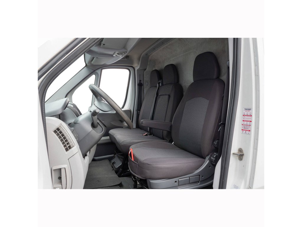 Opěradlo a sedadlo řidiče s loketní opěrkou a opěrkou hlavy. Dvojopěradlo spolujezdců se stolkem, otvorem pro pásy, 2 opěrky hlavy. Dvojsedák spolujezdců dělený napůl.