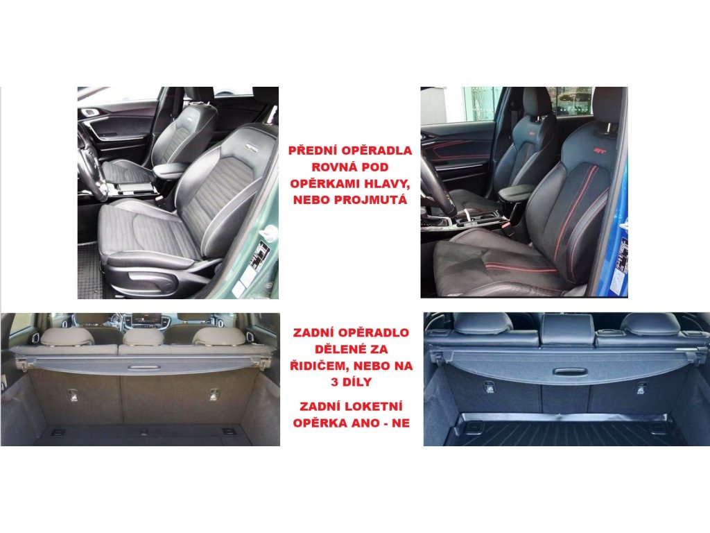 Autopotahy na míru KIA PROCEED III, od r. 2018. Autopotahy na míru na KIA PROCEED III, od r. 2018. Toto zboží se vyrábí na zakázku, kde dodací lhůta může být 30 dní i více. -zadní opěradlo dělené za řidičem, nebo dělené na 3 díly -zadní loketní opěrka, nebo bez zadní loketní opěrky -vzadu otvor pro 3 bodové pásy, isofixy, 3 opěrky hlavy. -přední opěradla rovná, nebo tvarovaná pod opěrkama hlavy- GT. -2 opěrky hlavy, airbagy, kapsy, přední loketní opěrka Kvalitní, silné autopotahy z čalounické látky včetně zadní části zadních opěradel v zavazadlovém prostoru. Silné polstrování, laminovaná spodní vrstva textilního materiálu. Potahy lze prát na 30°, velmi snadná montáž. Autopotahy šite na míru dokonale pasují, a silná laminace autopotahy zpevňuje a zabraňuje sklouzávání potahů ze sedadel. Sada autopotahů na celé auto včetně povlaků hlavových opěrek. Vhodné pro auta s bočními airbagy, ale lze použít i pro auto, které boční airbag nemá (speciální šev). VYROBENO v EU. NOVINKA NA TRHU - ZAVÁDĚCÍ CENA! Zboží je atestováno - ATEST 8SD.