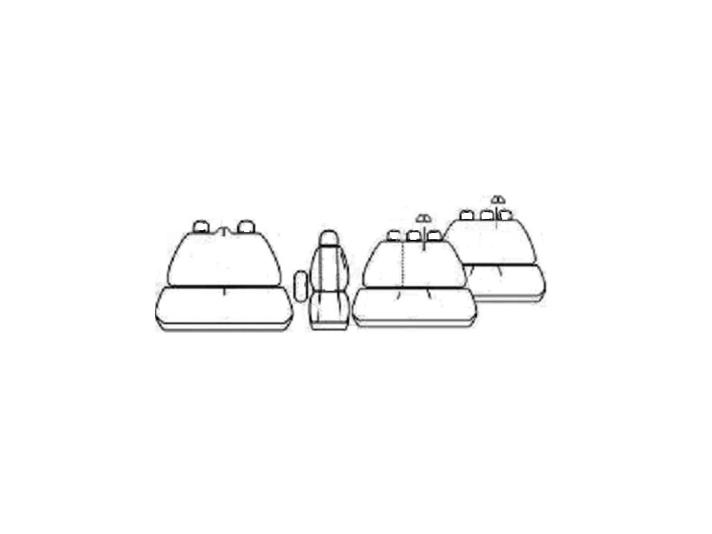 Potah řidíče S LOKETNÍ OPĚRKOU a dvojpotah spolujezdců, 3 opěrky hlavy. V druhé řadě třimístná sedačka s děleným opěradlem 2/1, 3 opěrky hlavy. Ve třetí řadě třimístná sedačka nedělené, 3 opěrky hlavy.