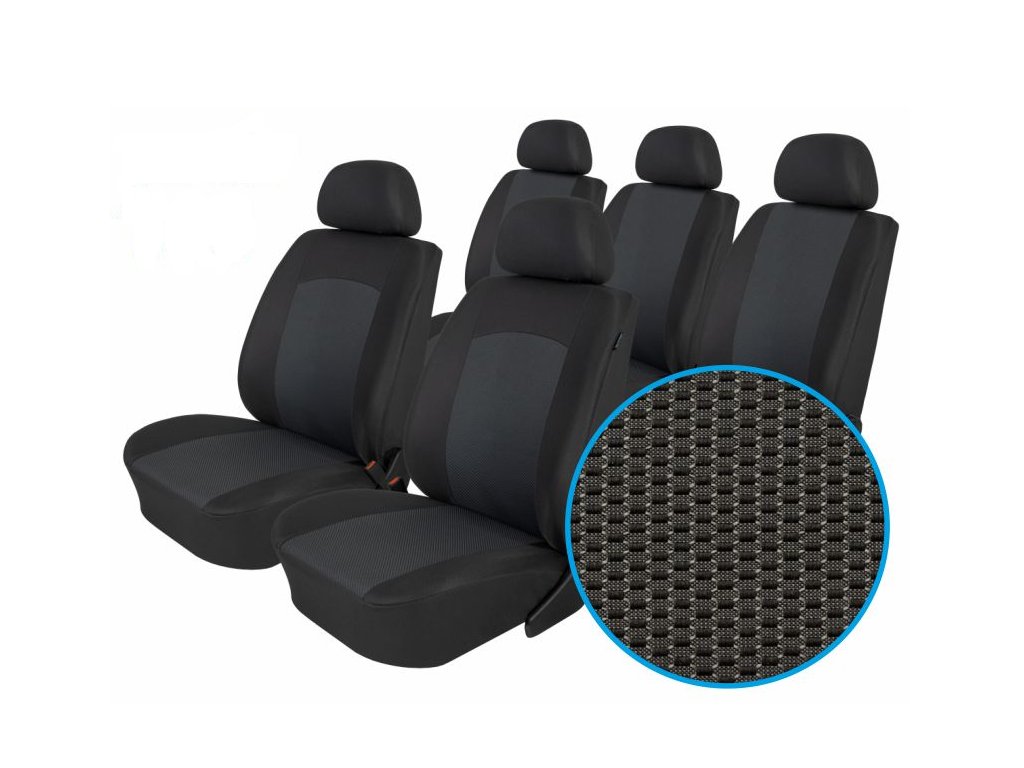 Sada autopotahů na celé auto včetně povlaků hlavových opěrek. Vhodné pro auta s bočními airbagy, ale lze použít i pro auto které boční airbag nemá (speciální šev).
