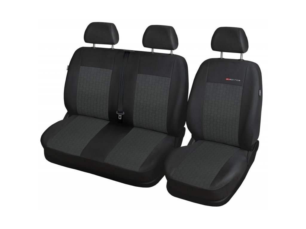 Potah řidíče s bederní opěrkou a loketní opěrkou. Dvojpotah spolujezdců s NEDĚLENÝM sedákem, opěradlo nedělené, 3 opěrky hlavy.