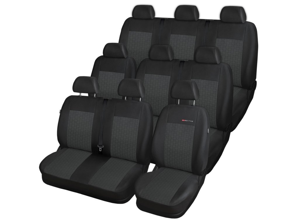První řada : Potah řidíče s loketní opěrkou, bederní opěrka a dvojpotah spolujezdců s NEDĚLENÝM dvojsedákem, 3 opěrky hlavy.