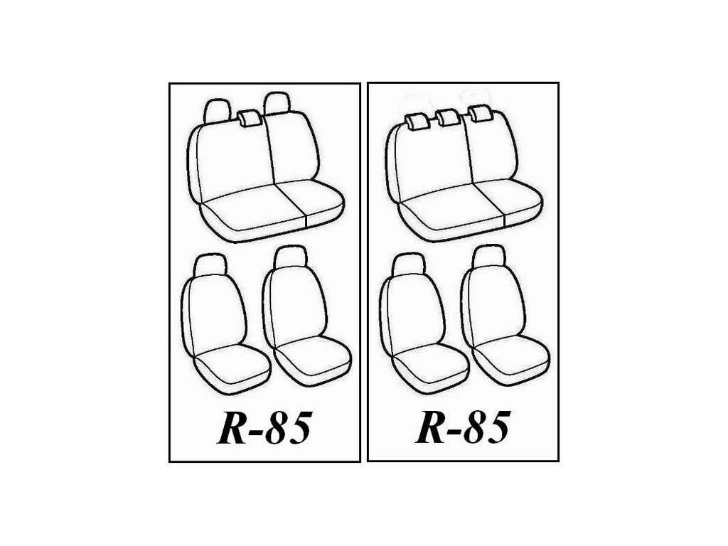 Přední sedačky s kapsami, zadní opěradlo a sedadlo dělené, 5 opěrek hlavy (sada obsahuje 7 opěrek hlavy pro model před a po faceliftu). Zadní opěradla jsou potažená také v zavazadlovém prostoru - žádné gumičky a háčky, ale kompletní potah.