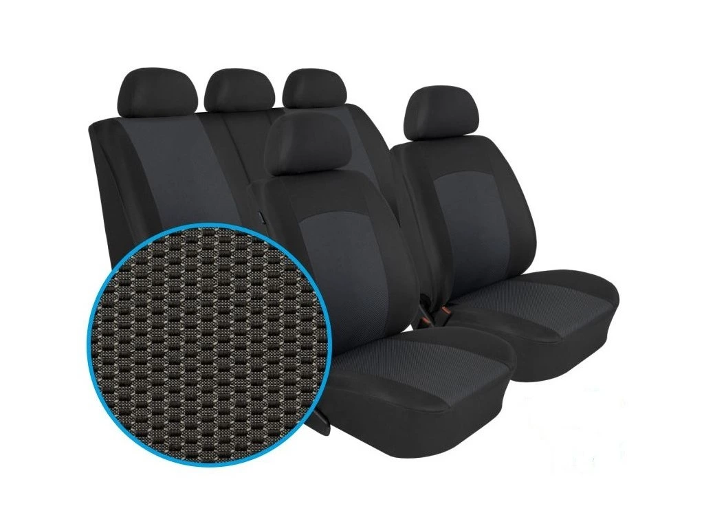 VYROBENO v EU. NOVINKA NA TRHU - ZAVÁDĚCÍ CENA! Silné polstrování, laminovaná spodní vrstva textilního materiálu. Silná látka i na zadních dílech potahů (žádná síťovina). Při výrobě a zpracování střihů pro konkrétní auto je vždy přihlíženo k původním švům a tvarům sedadel, a k tomu, aby výsledný efekt byl co nejlepší z estetického a funkčního hlediska. Autopotahy dokonale pasují a laminace autopotahy zpevňuje a zabraňuje sklouzávání potahů ze sedadel. Sada autopotahů na celé auto včetně povlaků hlavových opěrek. Vhodné pro auta s bočními airbagy, ale lze použít i pro auto které boční airbag nemá (speciální šev). Potahy lze prát na 30°, velmi snadná montáž. Zboží je atestováno - ATEST 8SD.