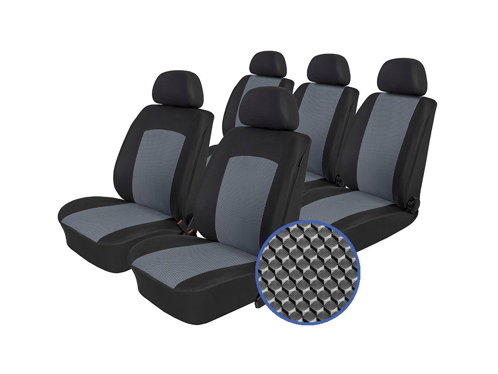 VYROBENO v EU. NOVINKA NA TRHU - ZAVÁDĚCÍ CENA! Silné polstrování, laminovaná spodní vrstva textilního materiálu. Silná látka i na zadních dílech potahů (žádná síťovina). Při výrobě a zpracování střihů pro konkrétní auto je vždy přihlíženo k původním švům a tvarům sedadel, a k tomu, aby výsledný efekt byl co nejlepší z estetického a funkčního hlediska. Autopotahy dokonale pasují a laminace autopotahy zpevňuje a zabraňuje sklouzávání potahů ze sedadel. Sada autopotahů na celé auto včetně povlaků hlavových opěrek. Vhodné pro auta s bočními airbagy, ale lze použít i pro auto které boční airbag nemá (speciální šev). Potahy lze prát na 30°, velmi snadná montáž. Zboží je atestováno - ATEST 8SD.