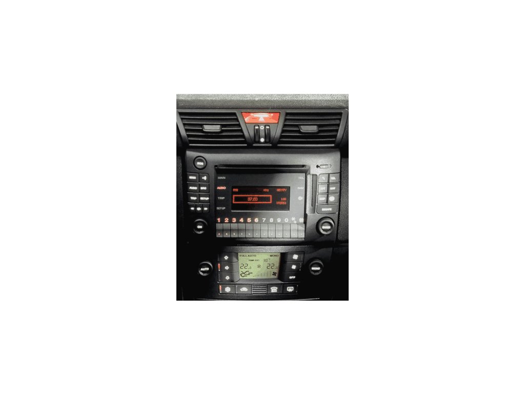 Plastový adaptér + kovový rámeček slouží pro montáž neoriginálního 2DIN autorádia.