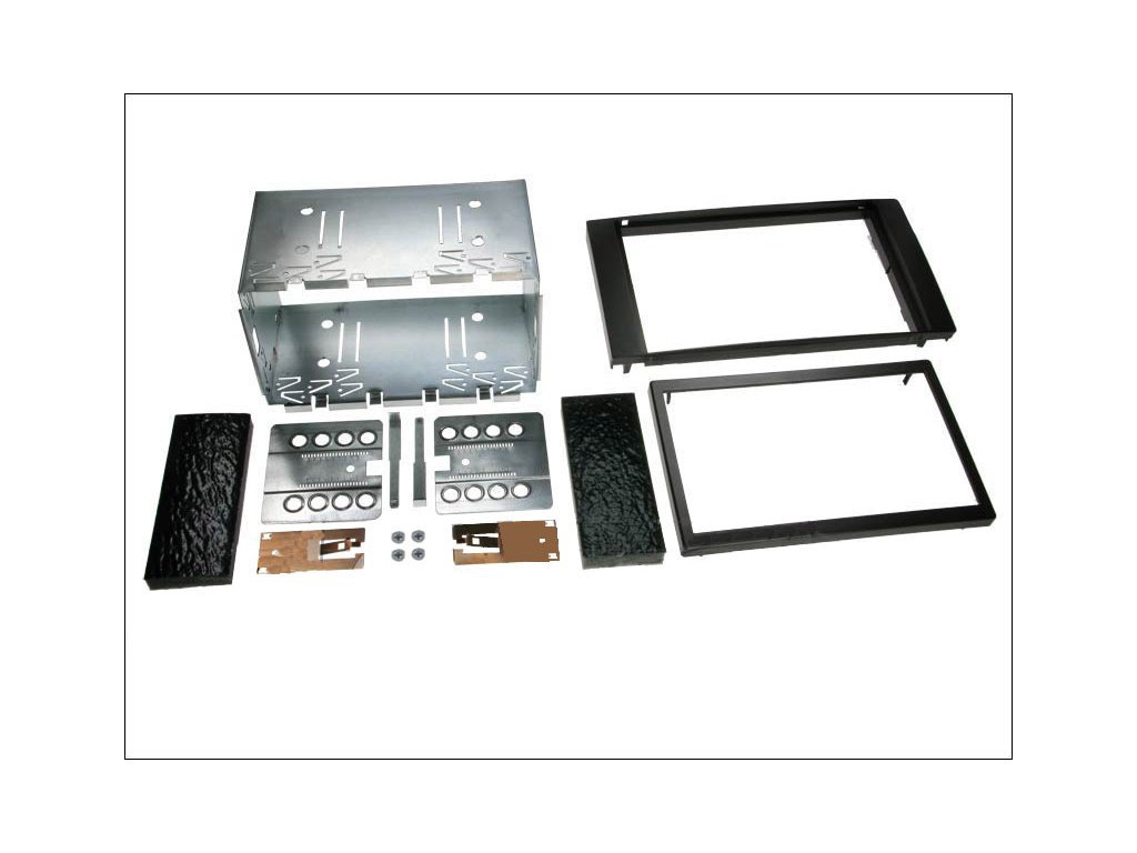 Plastový adaptér v černé barvě + kovový rámeček slouží pro montáž neoriginálního 2DIN autorádia.