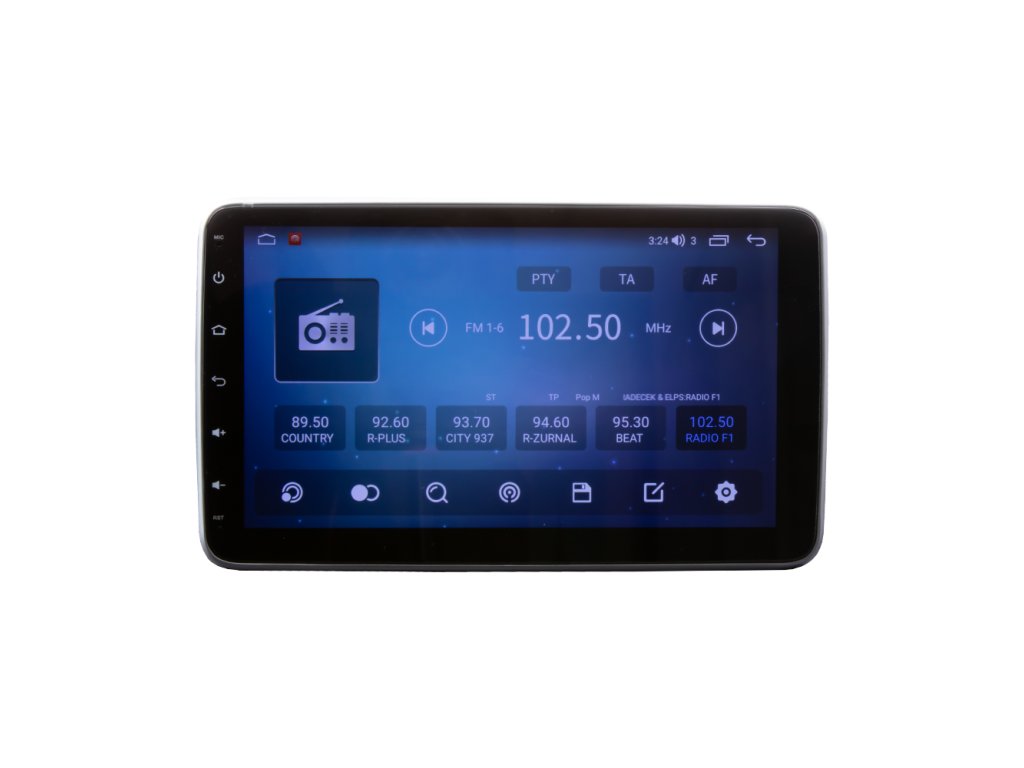 1DIN multimediální autorádio s 10" LCD na kloubu s operačním softwarem Android, Wi-Fi, GPS, Bluetooth, CarPlay, Mirror link, 4G.