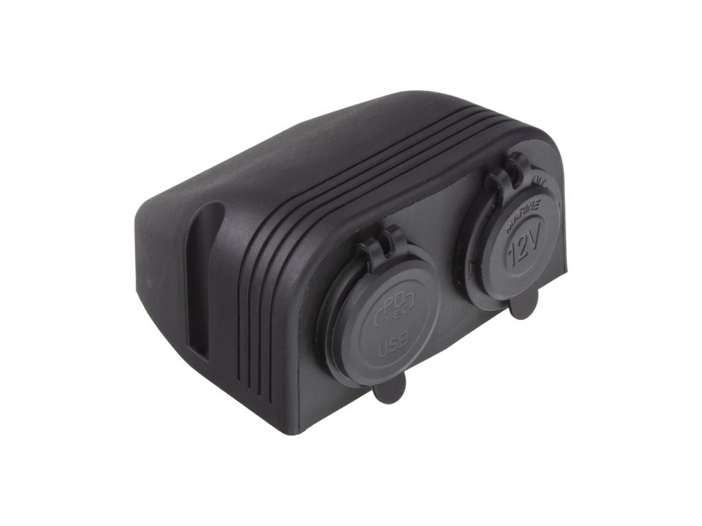 Dvojitá zásuvka s panelem 1x CL + 2x nabíječka USB voděodolná.