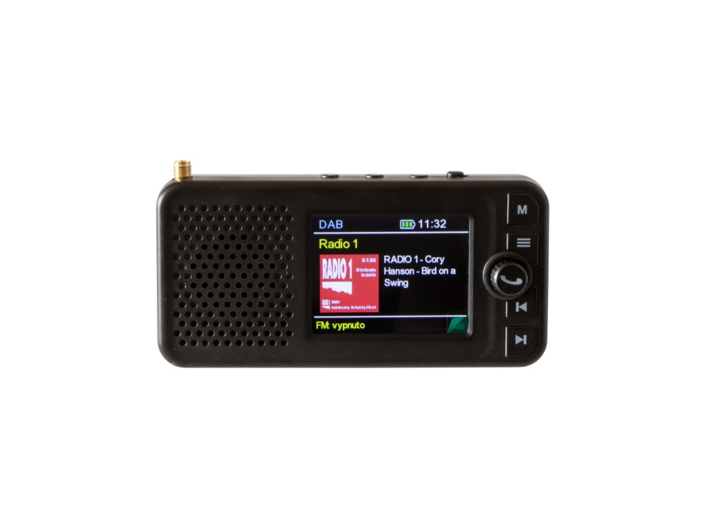 Tento přijímač umožní přijímat digitální rozhlasové vysílání DAB / DAB+ a příjem FM. Přenos zvuku do autorádia probíhá přes FM modulátor nebo pomocí AUX výstupu, pro venkovní použití je integrován reproduktor.