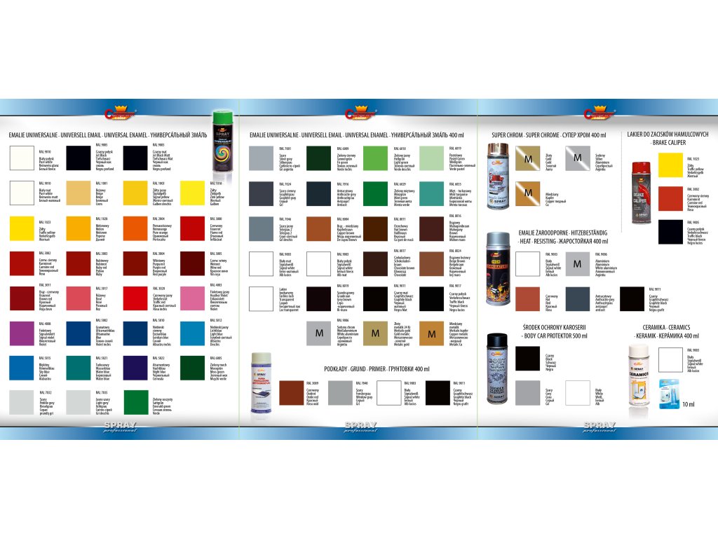 Moderní řada luxusních univerzálních vrchních barev Emaily Sprej Professional s vysokým leskem v aerosolu se používá k nátěrům dřeva, kovu, karoserií, některých umělých hmot, sádry, omítek, plechů karosérií, bicyklů, nábytku apod. jak v exteriéru tak v interiéru.