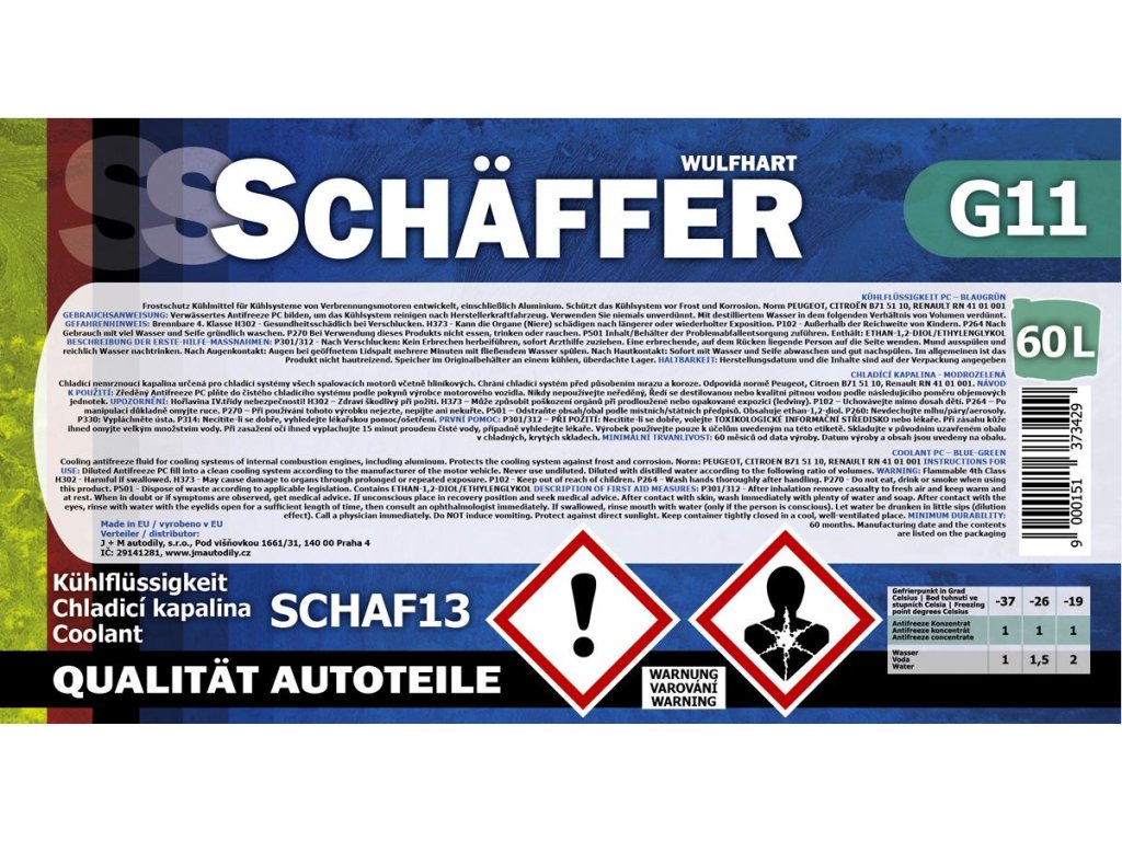 - Schäfer Antifreeze G11 – balení dle zvolené varianty (1 l, 3 l, 10 l, 25 l)