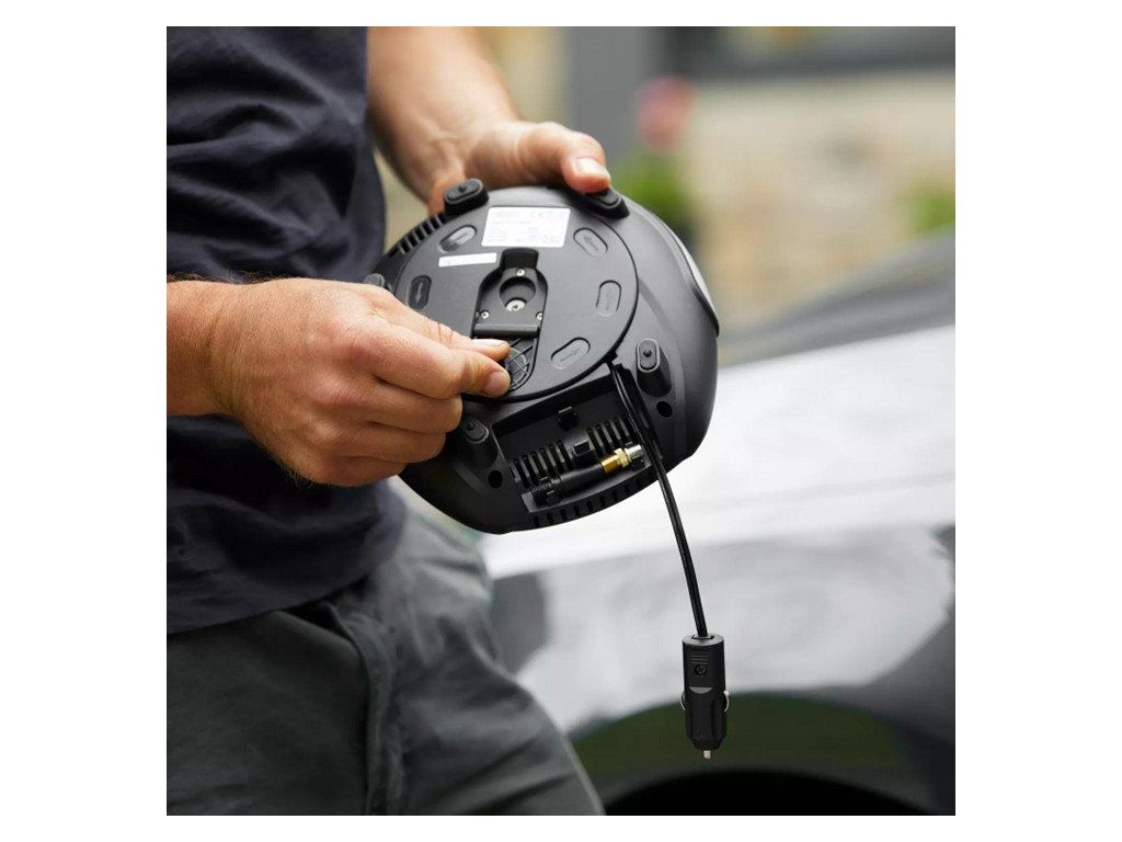 Napájení ze zásuvky 12 V ve vozidle, dlouhý 3 m napájecí kabel TyreInflate 200 usnadňuje dosažení všech pneumatik.