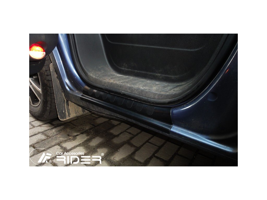 Kryty prahů RIDER zajišťují velmi dobrou ochranu prahů vozu před nečistotami a poškozením od bot pasažérů. Lišty jsou instalovány bez zasahování do karoserie vozu. Snadná instalace pomocí 3M samolepicí pásky, továrně aplikované na lisovaný povrch. Lišty jsou vyrobeny z PU kompozitu. Při poškození při kolizi se tento kompozit neodštěpí ani nezpůsobí ostré hrany nebezpečné pro účastníky kolize.