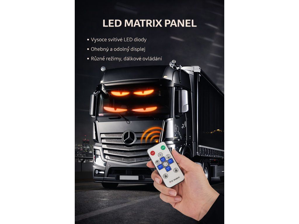 Programovatelný LED displej "Devil Eyes" s ovládáním přes aplikaci nebo dálkový ovladač – pro osobní i nákladní vozidla.