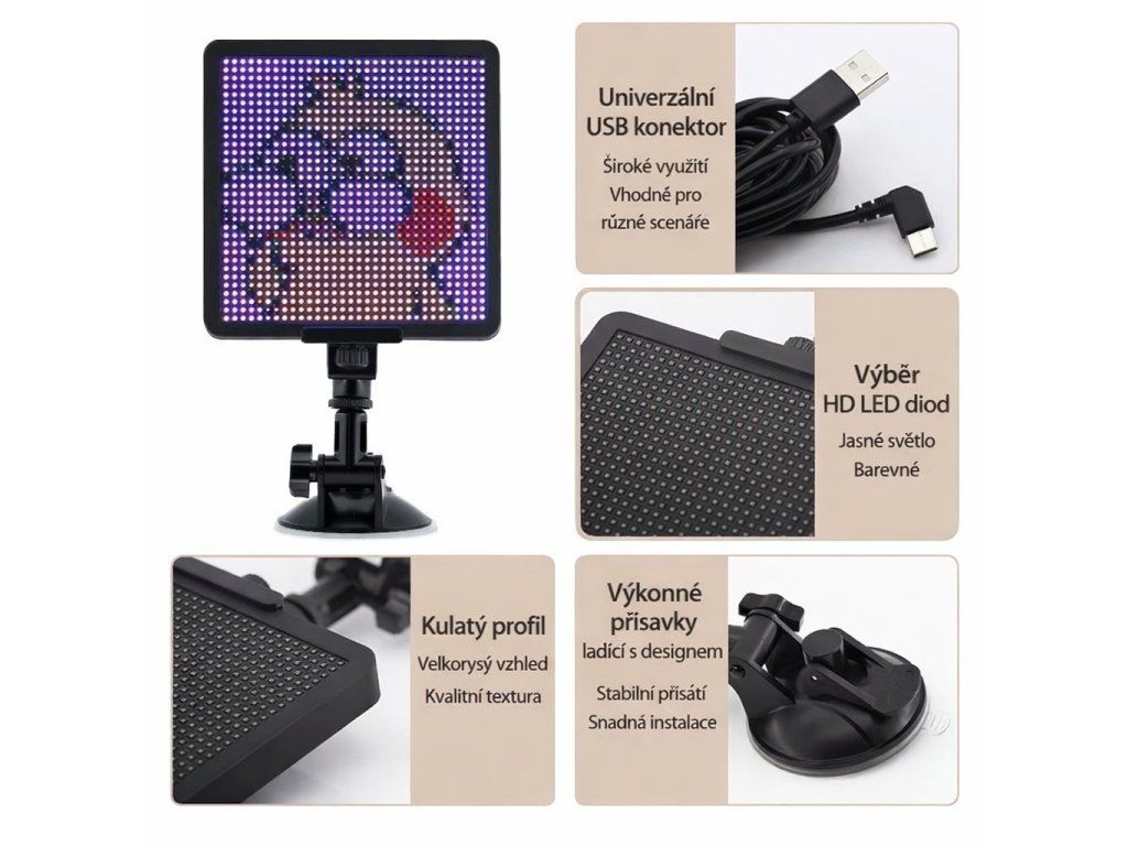 Programovatelný LED displej s ovládáním přes aplikaci nebo dálkový ovladač – pro osobní i nákladní vozidla.