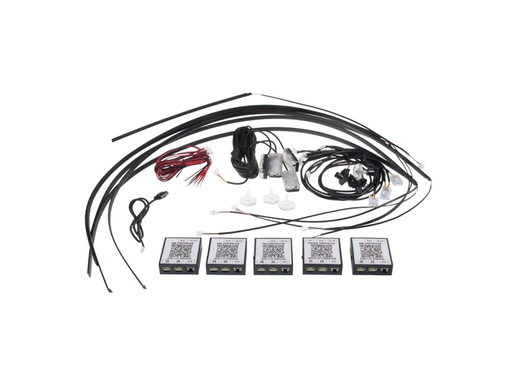 Sada obsahuje 5 ovládacích jednotek světel, které spolu komunikují bezdrátově a lze je libovolně rozmístit po vozidle.