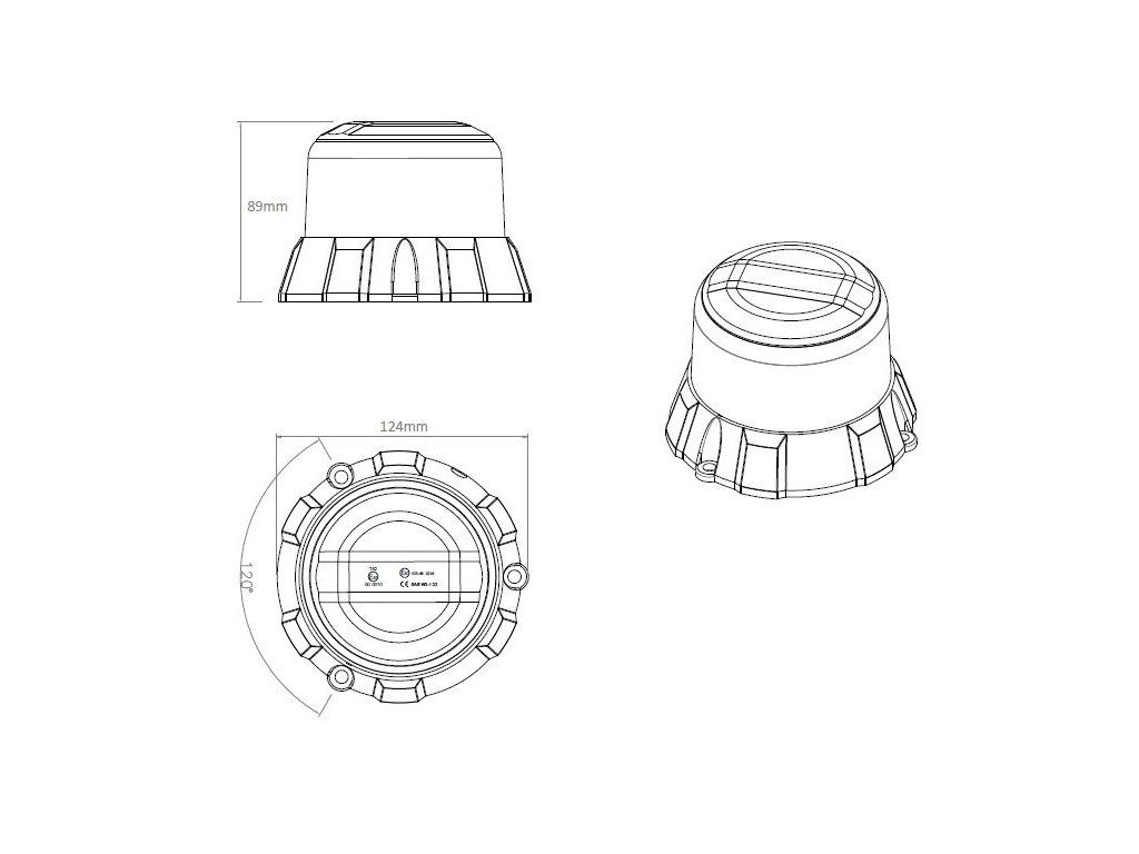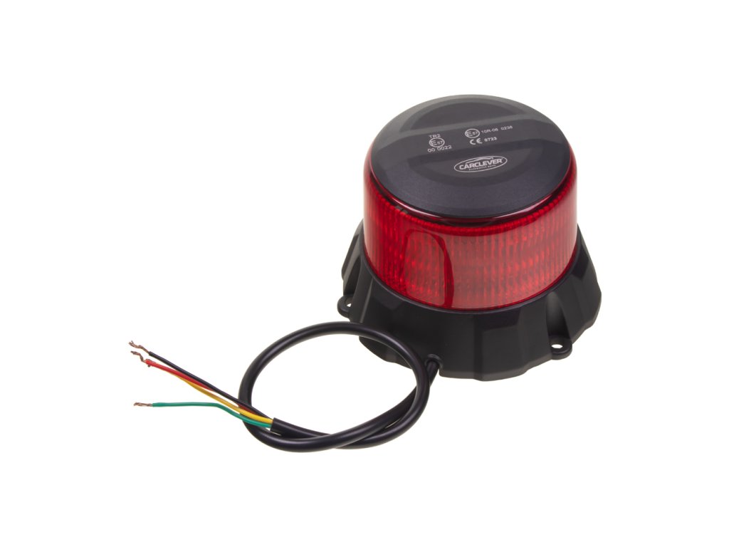 Profesionální robustní červený LED maják s černým hliníkovým obalem a výrazným výstražným efektem. Určen pro pevnou montáž pomocí šroubů.