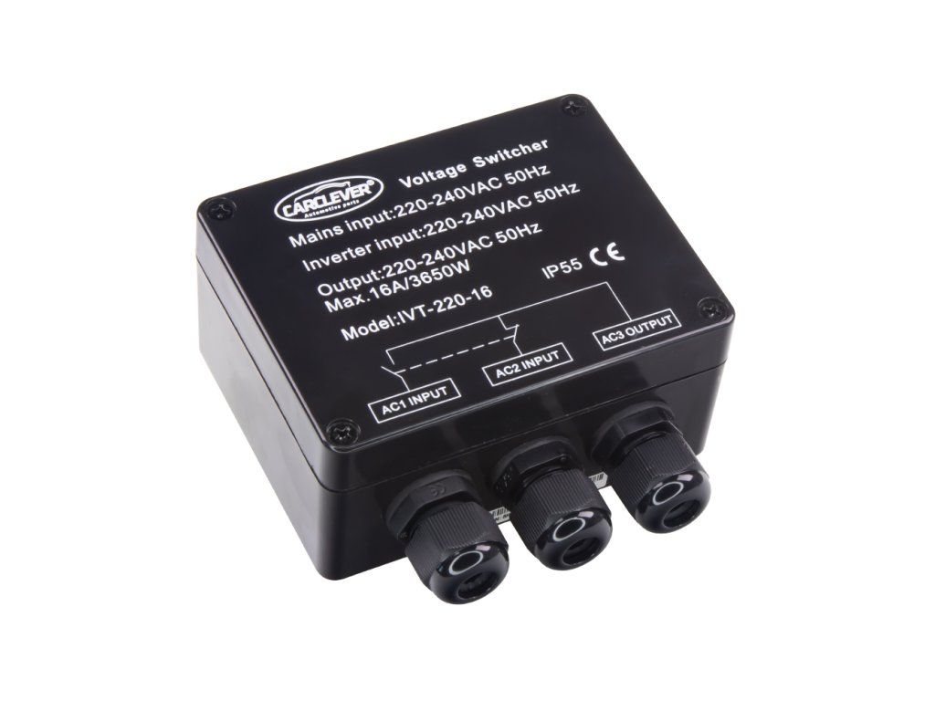 Přepínací stanice umožňuje zvolit preferovaný zdroj napájení.Zabudovaná relé zaručují přesný spínací práh a ochranu měniče před vnějším napětím.