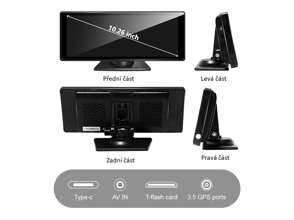 Monitor s OS Android a dotykovou 10,26" obrazovkou (Plug and Play, vhodné pro všechna auta) je dodávána se silným stojanem s přísavkou, se stojánkem pro pevnou montáž na palubní desku atd. Nemusíte rozebírat palubní desku vozu.