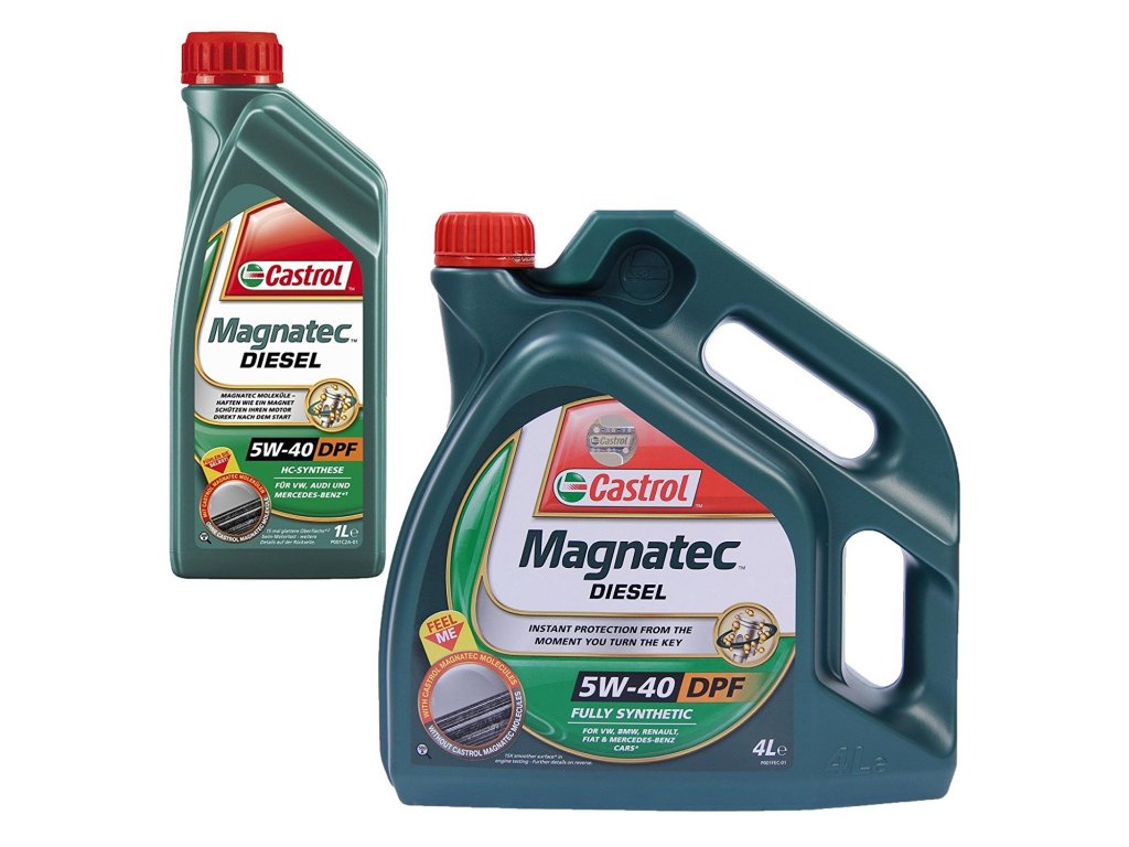 Popis a použití: Až 75 % opotřebení motoru vzniká při jeho zahřívání na provozní teplotu. Když motor zastaví, běžný olej steče z kritických částí motoru, avšak olej Castrol Magnatec nikoliv. Inteligentní molekuly tohoto oleje totiž přilnou k součástem motoru a vytváří tak ochranný mazací film, který je připraven chránit motor od okamžiku nastartování. Castrol Magnatec Diesel 5W-40 DPF kombinuje syntetickou technologii s inteligentními molekulami pro silnější ochranou vrstvu, která snižuje opotřebení během kritické doby zahřívání motoru. Castrol Magnatec Diesel 5W-40 DPF je vhodný pro použití v dieselových motorech osobních automobilů, kde výrobce doporučuje motorový olej specifikace API CF nebo ACEA C3 a viskozitní třídu SAE 5W-40. Je vhodný pro vozidla, která jsou vybavena filtry pevných částic (DPF). Castrol Magnatec Diesel 5W-40 DPF je schválen pro použití v široké škále vozů dle schválených specifikací. Pro správnou aplikaci nahlédněte do uživatelské příručky Vašeho automobilu.