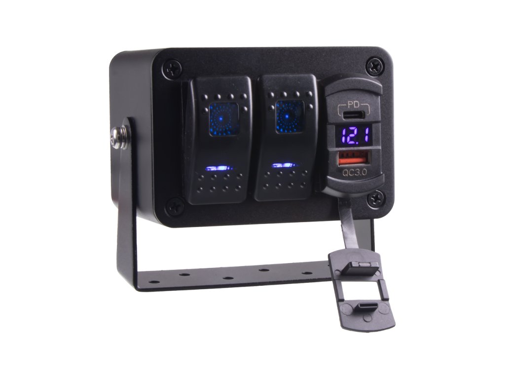 Panel (box) s 2x spínači Rocker a USB + USB-C zásuvkou s voltmetrem.
