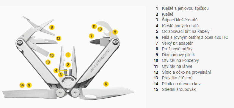 Kompaktní a praktický. Takový je nový multitool LEATHERMAN CURL. Je vybaven patnácti špičkovými nástroji (včetně ultraostré čepele nože, která je přístupná jednou rukou, pružinových nůžek a nástavce na bity). Přesto je CURL cenově velmi dostupný. S odnímatelnou kapesní sponou nebo nylonovým pouzdrem jej budete mít vždy po ruce.Obsah balení: nylonové pouzdro, odnímatelný klip Chcete být originální?nechte svůj multitool ogravírovat. NÁSTROJE Kleště s jehlovou špičkou Kleště Štípací kleště drátů Kleště tvrdých drátů Odizolovací břit na kabely Nůž s rovným ostřím z oceli 420 HC Velký bit adaptér Pružinové nůžky Diamantový pilník Otvírák na konzervy Otvírák na láhve Šídlo a očko na provlékání Pravítko (10 cm) Pilník na dřevo a kov Střední šroubovák