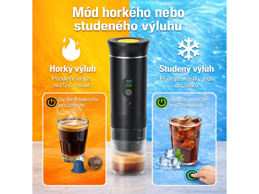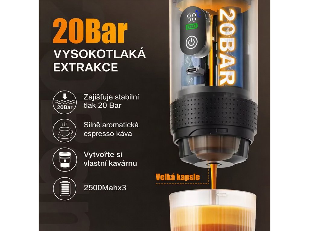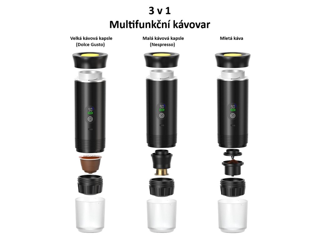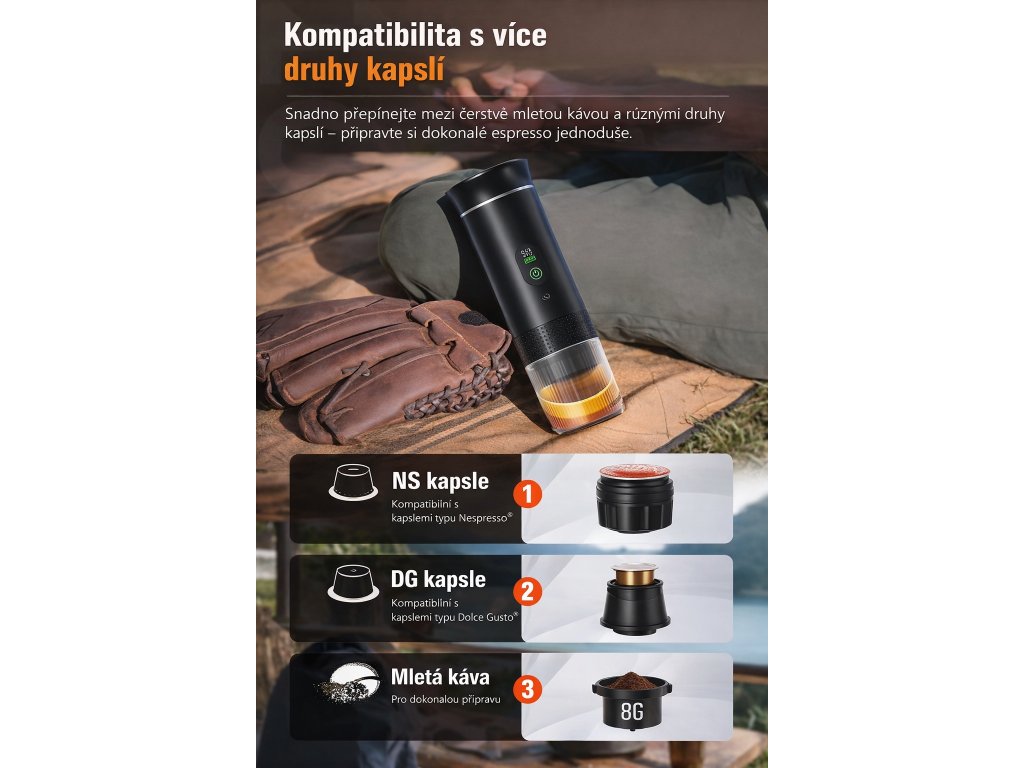 Přenosný espresso kávovar 3v1, dokonalé espresso kdykoliv a kdekoliv.