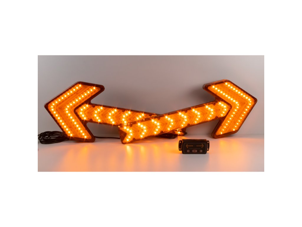 Směrová přídavná světla LED jsou určena např. pro označení stojícího vozidla při práci na silnici. Zároveň je vhodné použití např. při označení různých objektů bránících provozu při práci na silnici. Součástí je bezdrátový ovládací panel s LED displejem, který slouží pro ovládání a změnu režimů.