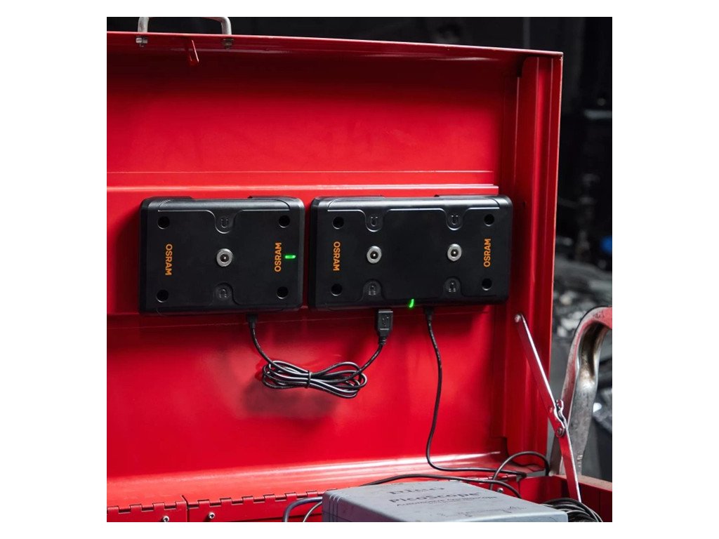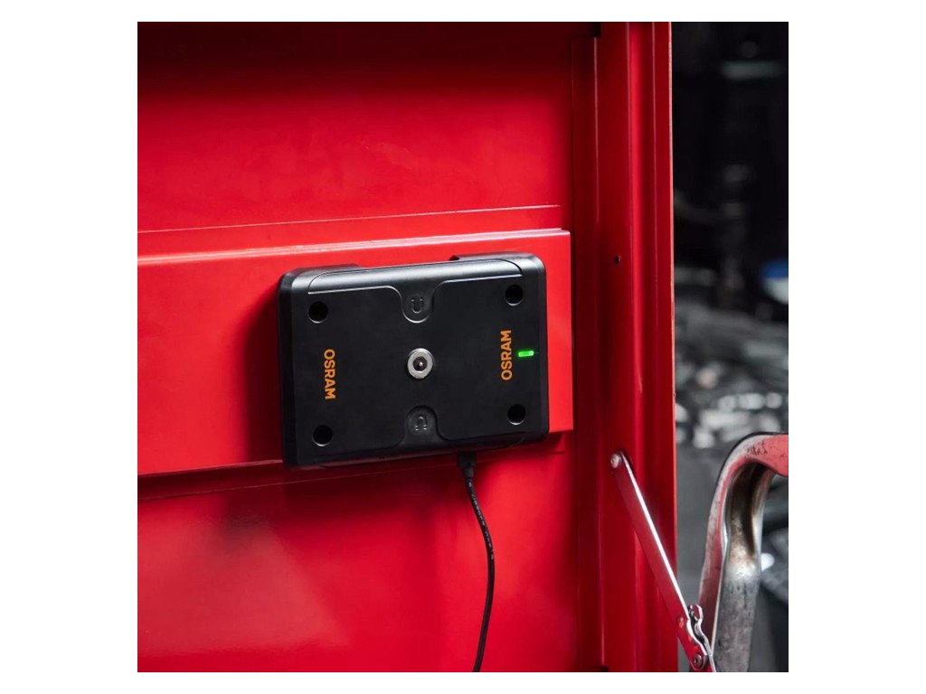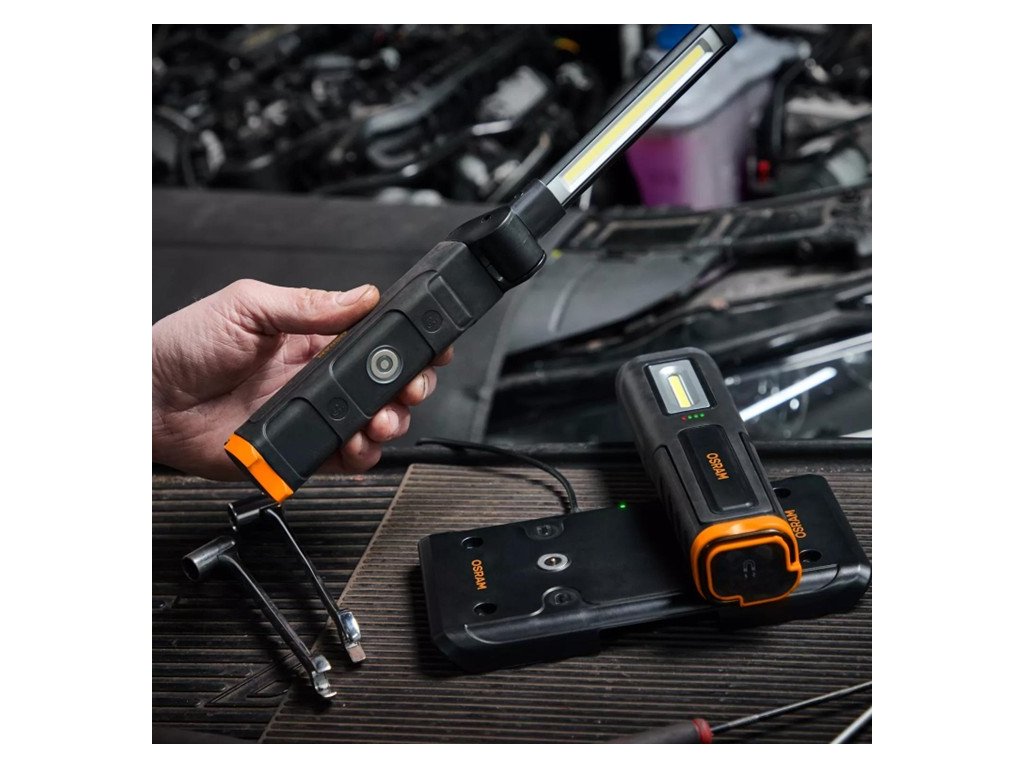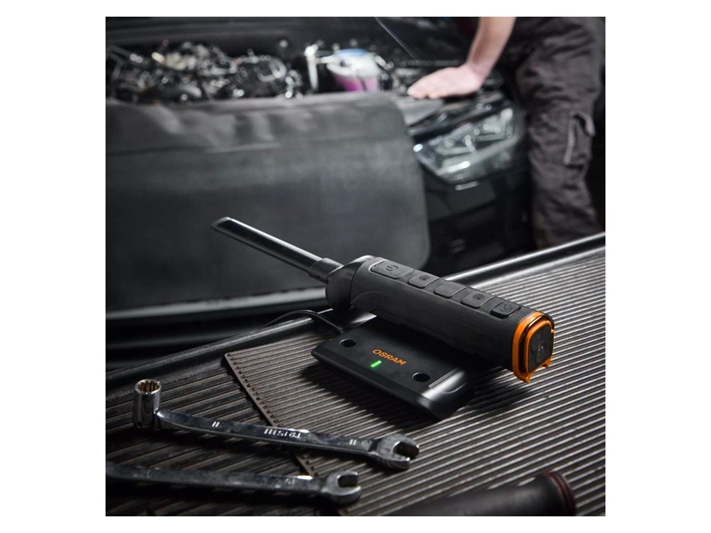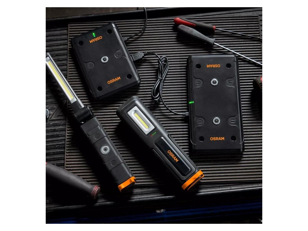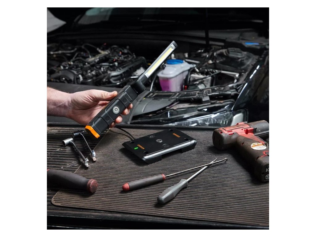 Bezdrátové inspekční svítiln OSRAM, které není nutné hledat a připojovat ke správnému nabíjecímu kabelu, se dobíjejí bez potíží pouhým položením na magnetickou nabíjecí podložku.