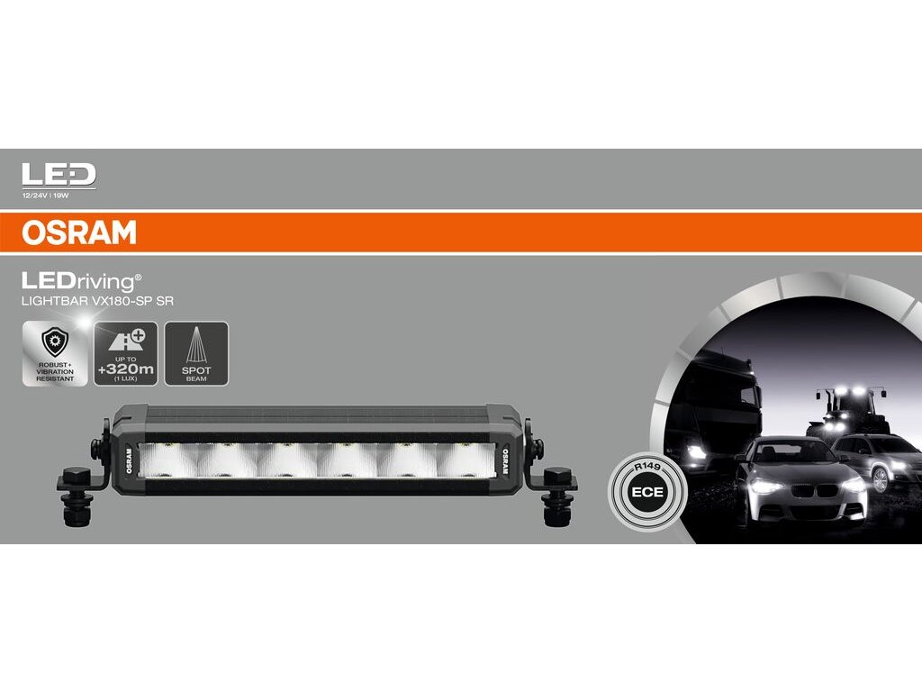 LEDriving Lightbar VX180-SP SR je účinným a efektivním doplňkem vašeho vozidla a lze jej připevnit na osobní a nákladní vozidla, zemědělské stroje, užitková vozidla, stavební vozidla, karavany, terénní vozidla a čtyřkolky (1).