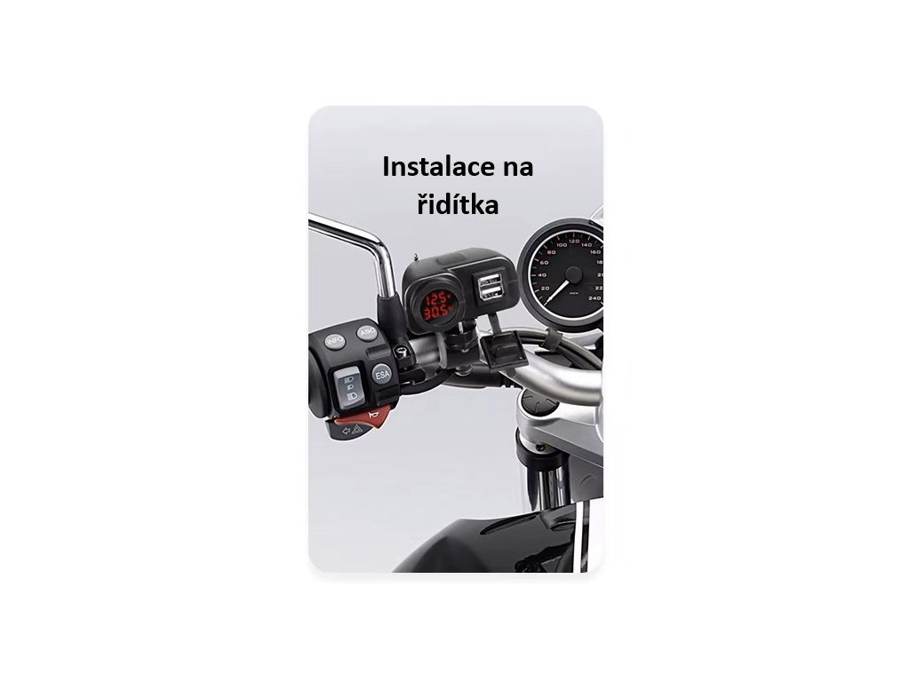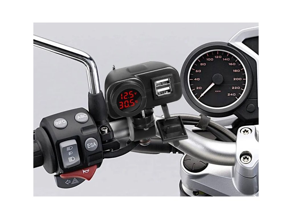 2x USB nabíječka s voltmetrem/teploměrem na motocykl