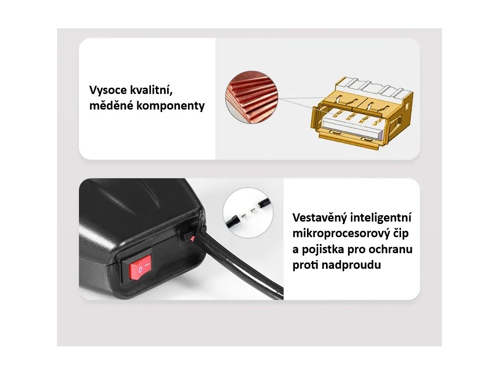 • FUNKCE 3 V 1: včetně duální USB nabíječky, teploměru a voltmetru, šetří místo a snadno se používá