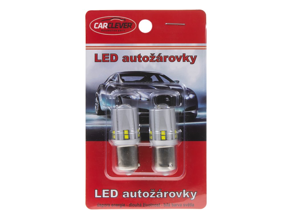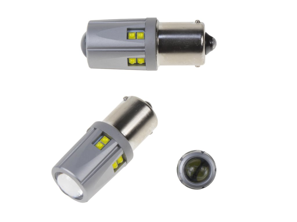 Nová generace LED autožárovek s paticí BA15S, bílá, 12 x super svítivý LED čip 5 W + rozptylová krycí čočka.