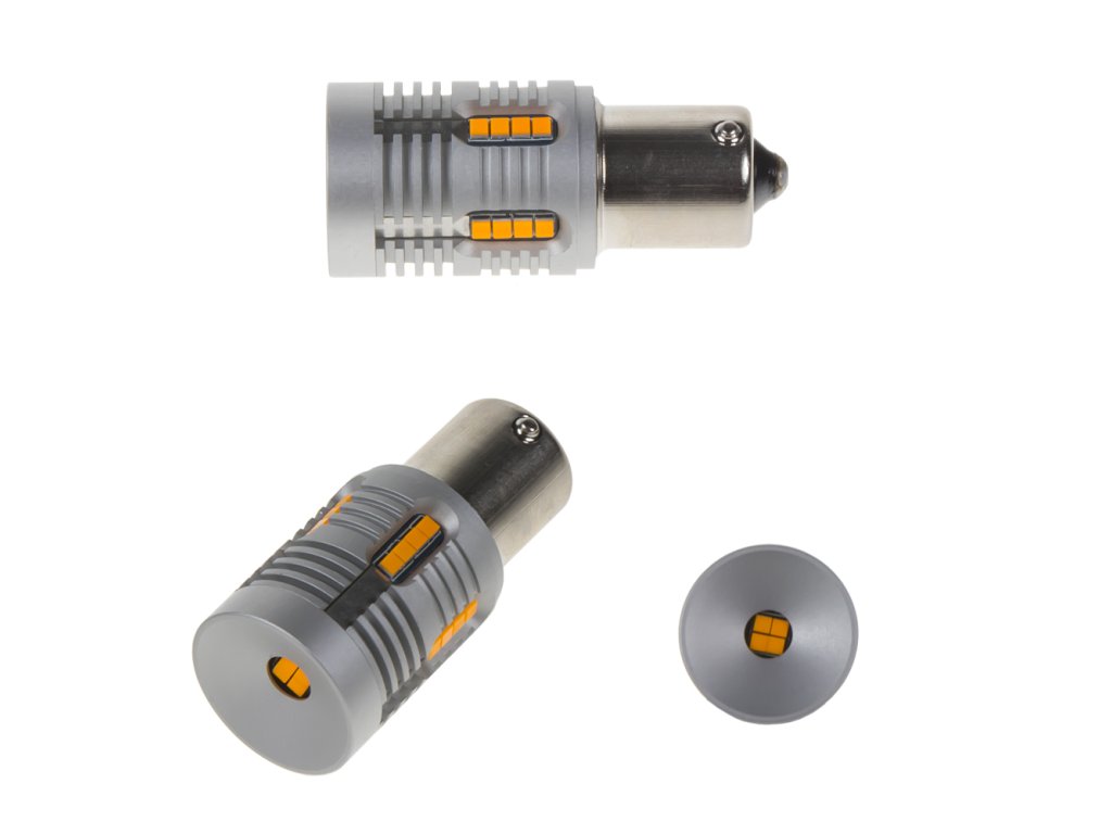 Nová generace LED autožárovek s paticí BA15S, oranžová, 24x LED čip 1W.