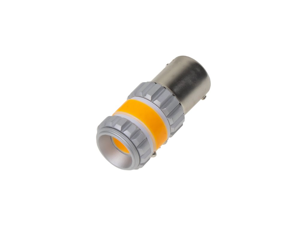Nová generace COB LED autožárovek s paticí BAU15S, oranžová, LED čip COB 360⁰.