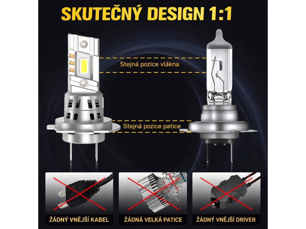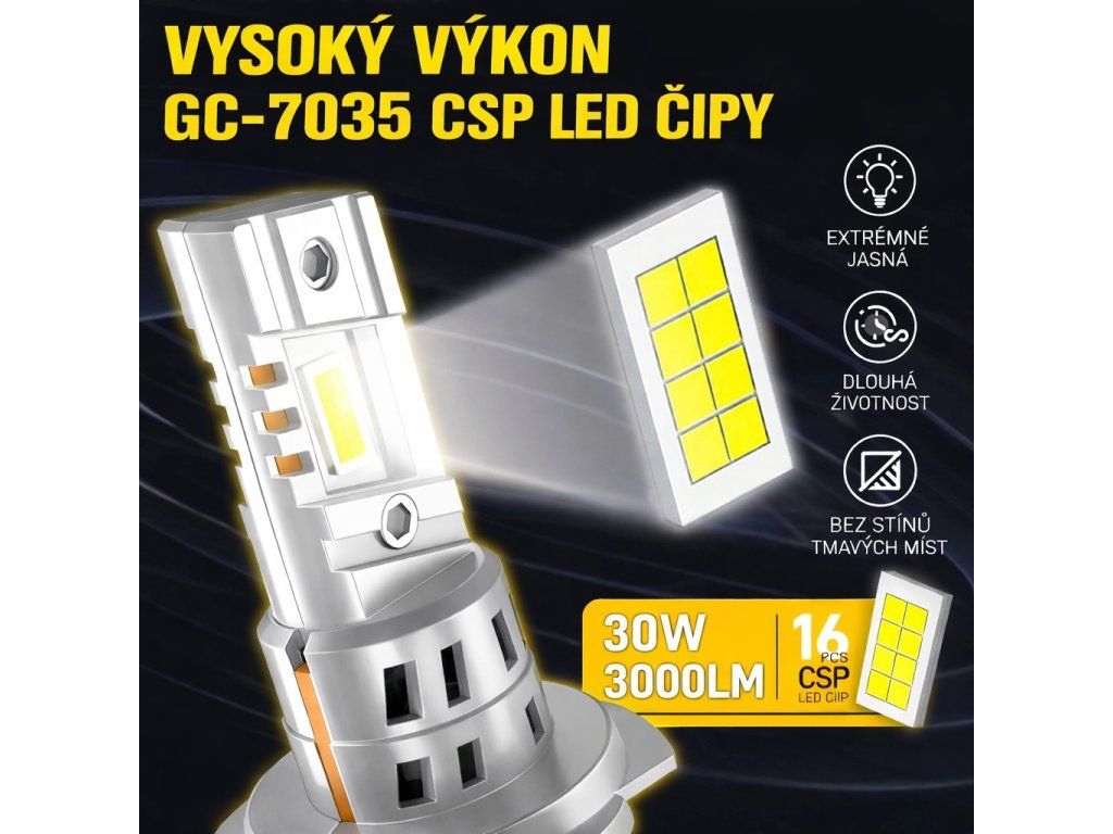 Nová generace mini LED autožárovek v kompaktním designu s paticí H7 - bílá, LED moduly GC-7035.