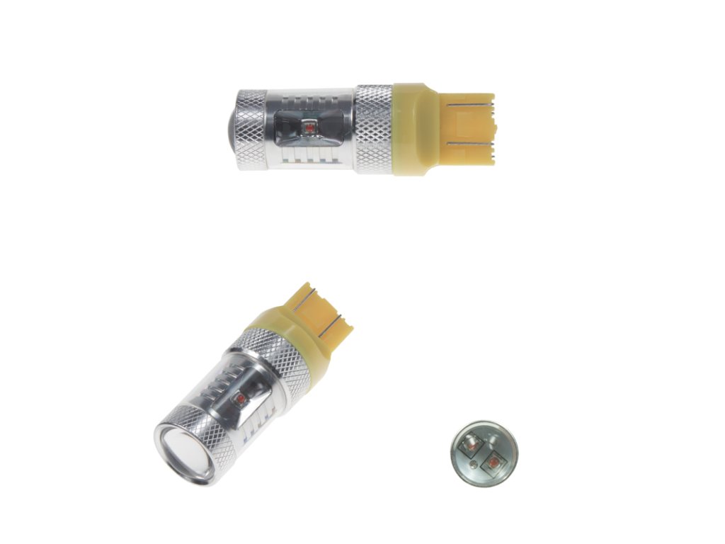 Nová generace LED autožárovek s paticí T20, oranžová, 6x super svítivý LED čip CREE XBD 5 W + rozptylová krycí čočka.