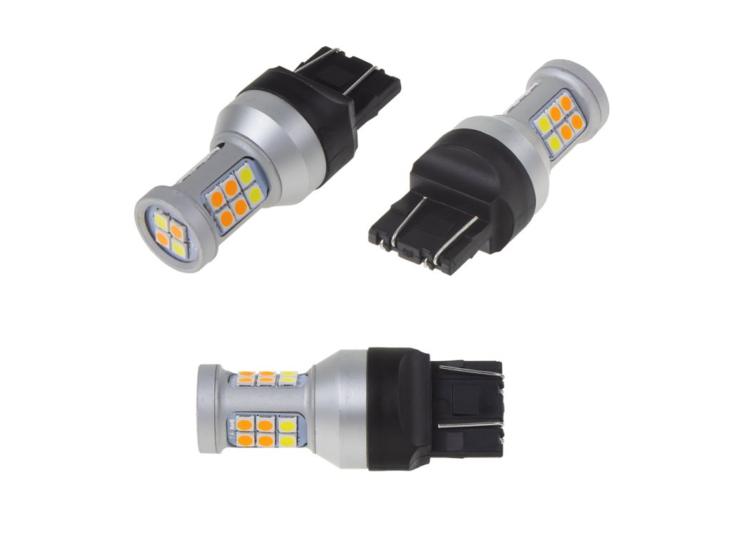 Náhradní LED žárovka s paticí T20 (7443) , dvoubarevná (bílá/oranžová), 22x super svítivá SMD LED 5630.