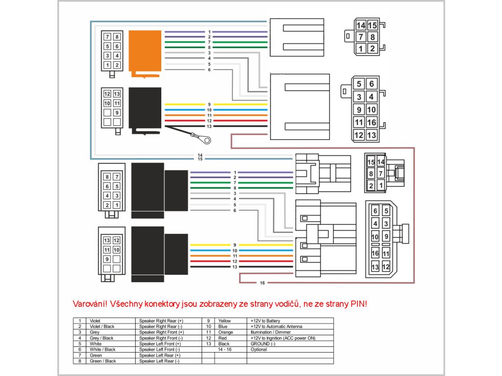 Určeno pro starší vozy Nissan do r. 2000 se dvěmi konektory autorádia (10 + 6 pinů).