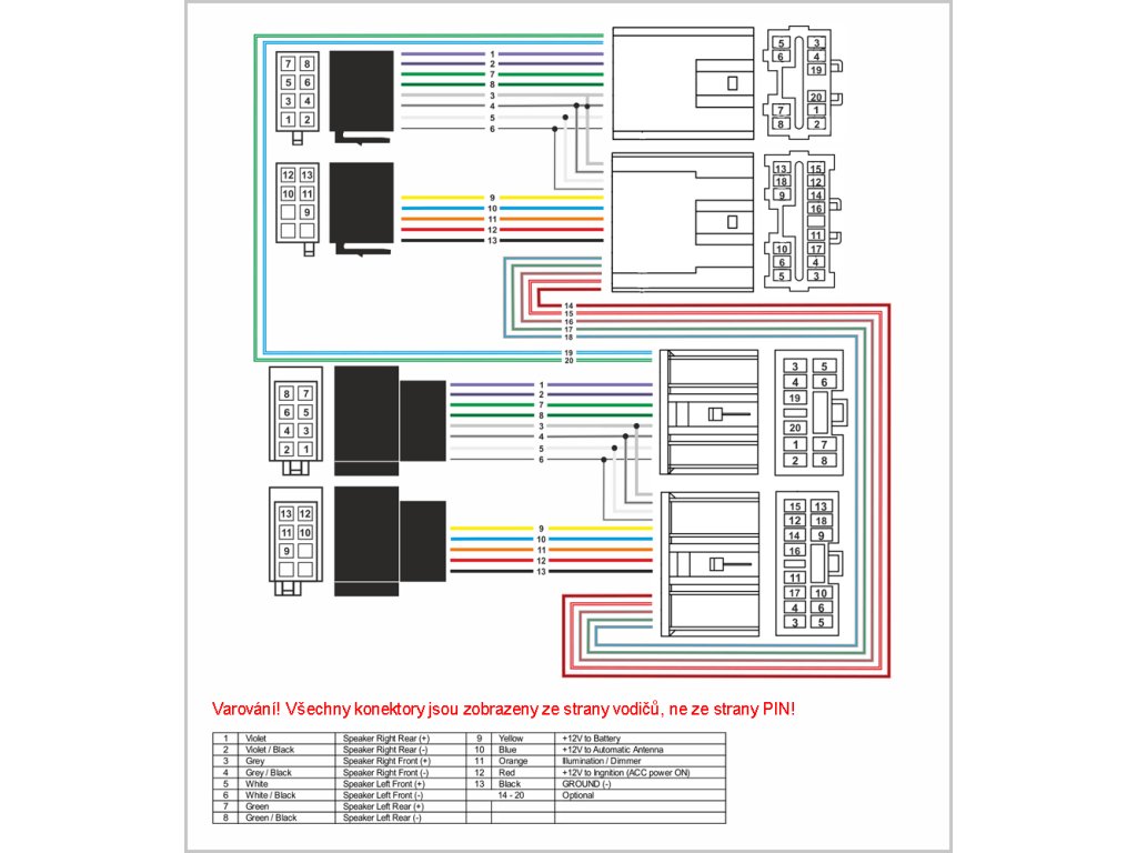 Určeno pro starší vozy Volvo se dvěmi připojovacími konektory autorádia (14 + 10 pinů) bez Dolby systému.