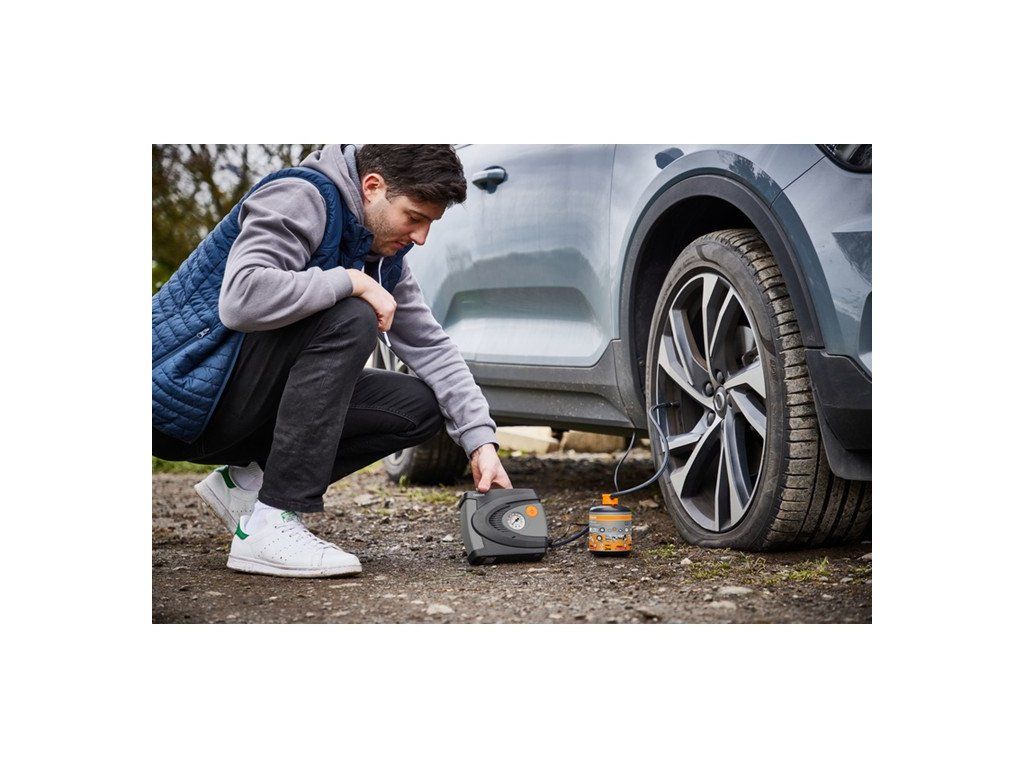 Bez potřeby nářadí nebo zvedáků je proces opravy propíchnuté pneumatiky rychlý a snadný a vrátí vás na silnici do 10 minut.