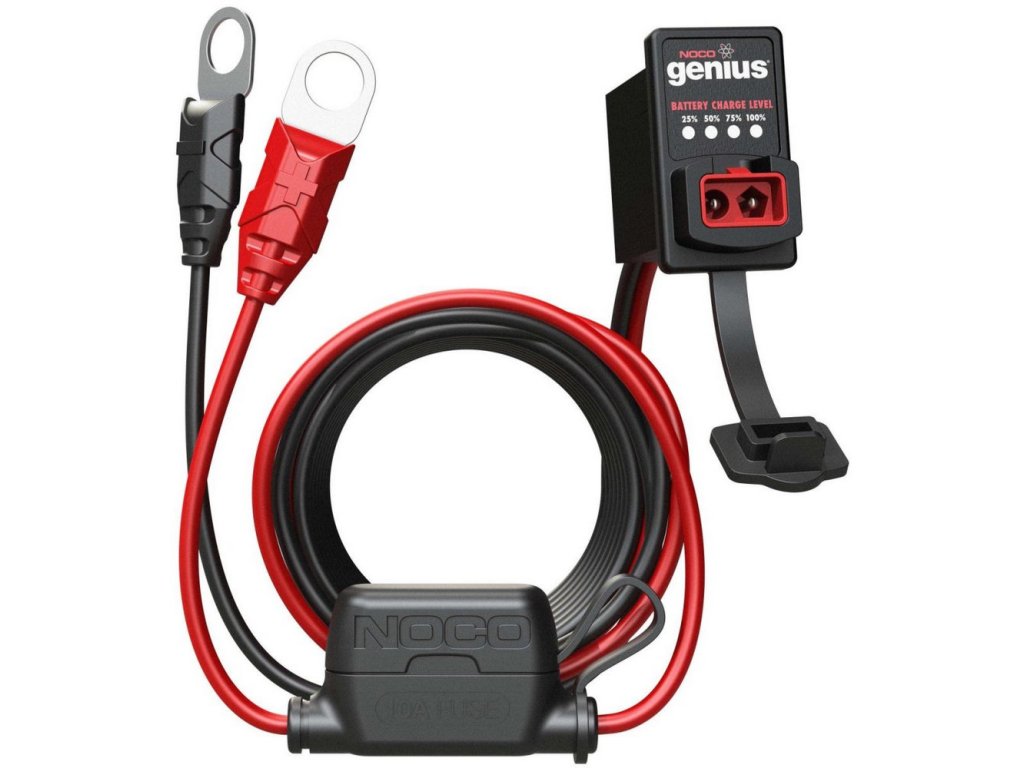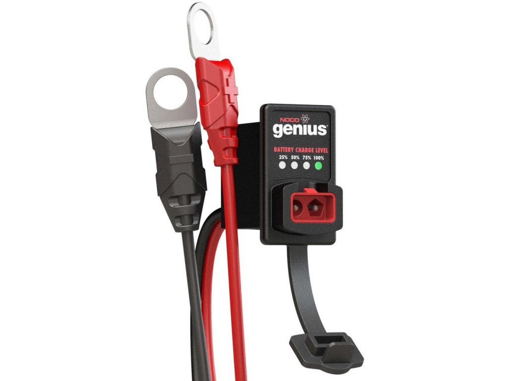 Kabel se zápustnou kontrolkou stavu akumulátoru slouží k rychlému připojení nabíječky k akumulátoru. Akumulátory nebývají vždy volně a snadno přístupné pro možnost připojení nabíječky prostřednictvím kleští na akumulátorové svorky.