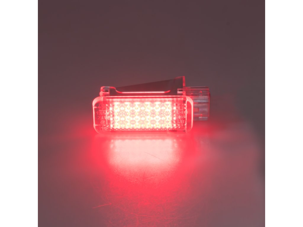 Náhrada originálního světla pro osvětlení interiéru v červené barvě - prostor pro nohy pod předními sedadly automobilu, ve vozech koncernu VW, Škoda, Lamborghini. Jedná se o přímou náhradu, což zajišťuje jednoduchou montáž. Tyto LED světla dají vašemu vozu originální vzhled tím, že změní nažloutlé světlo klasické žárovky na červené světlo.
