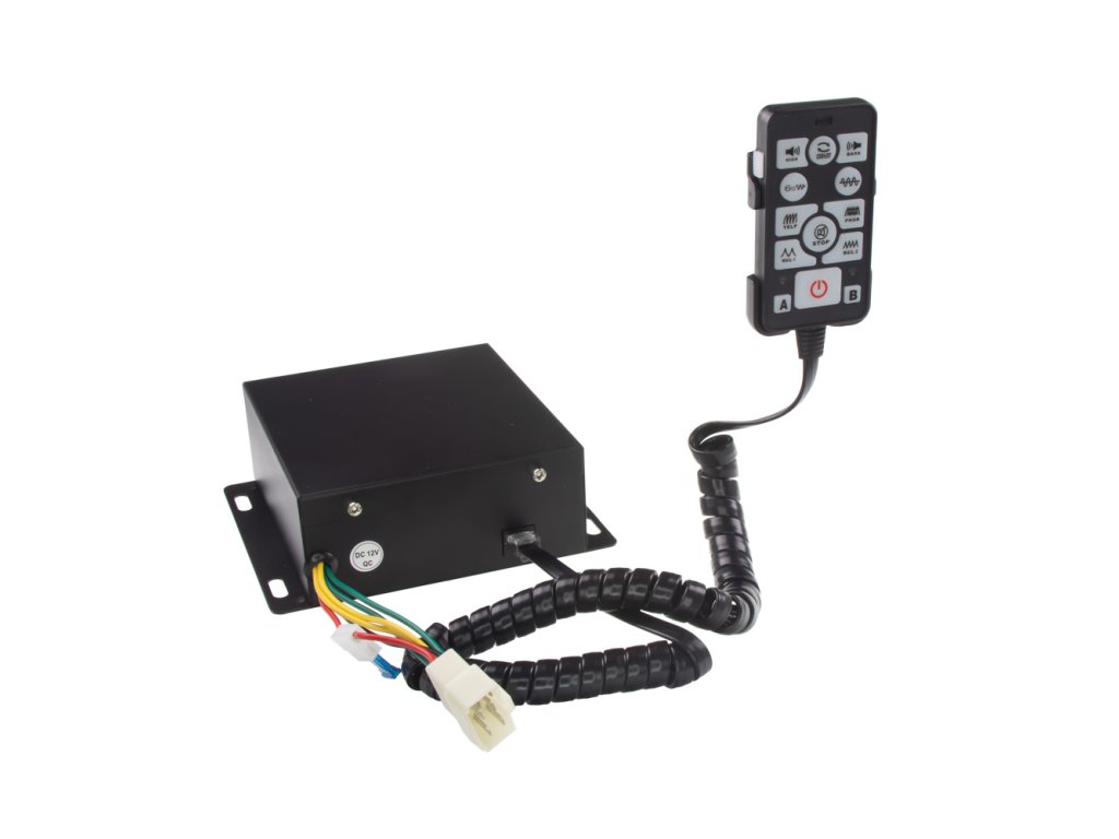 Profesionální výstražný systém obsahuje modul s nahranými zvuky sirény + ovladač s integrovaným mikrofonem. Spínání dvou světelných zdrojů. Jednotku lze umístit mimo dosah – ovladač je na kabelu. Tento výstražný systém je možné využít ve vozidlech např. pro organizační činnost.